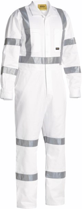 Bisley Cotton Drill RTA Night Worker Overall X Pattern Reflective Tape White