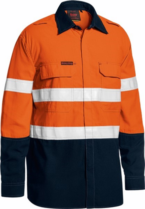 Twin Bisley signature single mitred chest pockets with plastic press snap flap closure and left pocket with pen division
