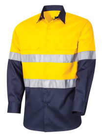 Cotton Drill Shirt Long Sleeve 2 Hoop Pattern Reflective Tape Yellow/Navy M