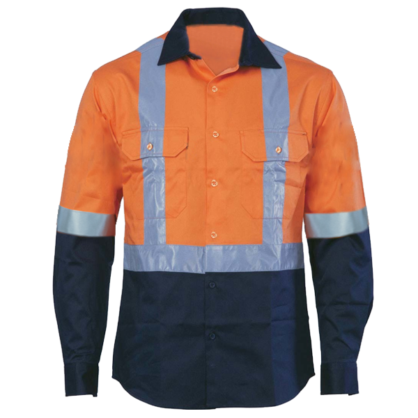 Cotton Drill Shirt Long Sleeve X Pattern Reflective Tape Orange/Navy M
