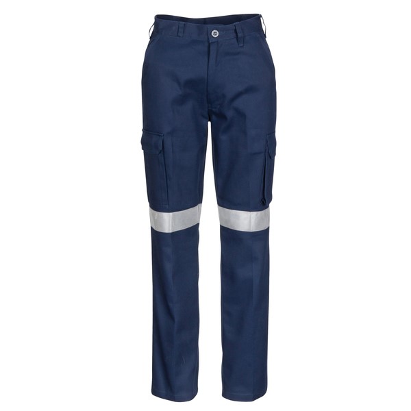 Comfort fit one side contains large flap cargo pocket the other a tool and mobile phone pockets.