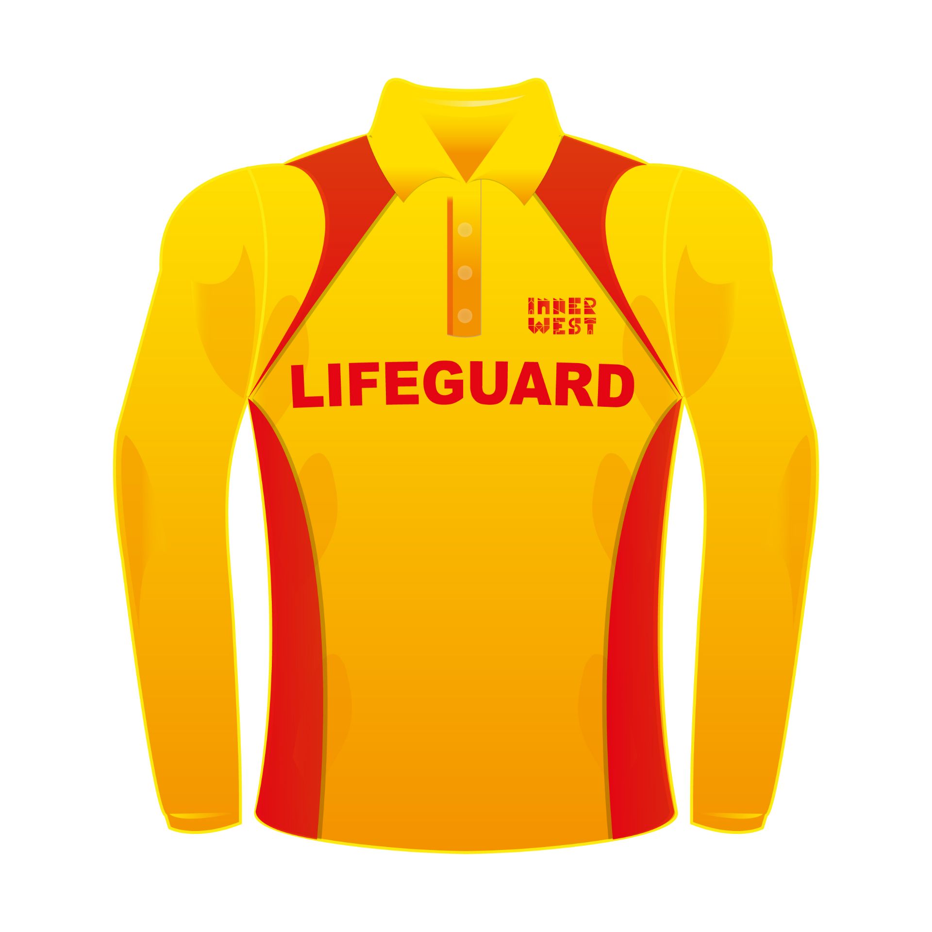 Polo Shirt Mens Long Sleeve Gold Body Red Panels - Lifeguard